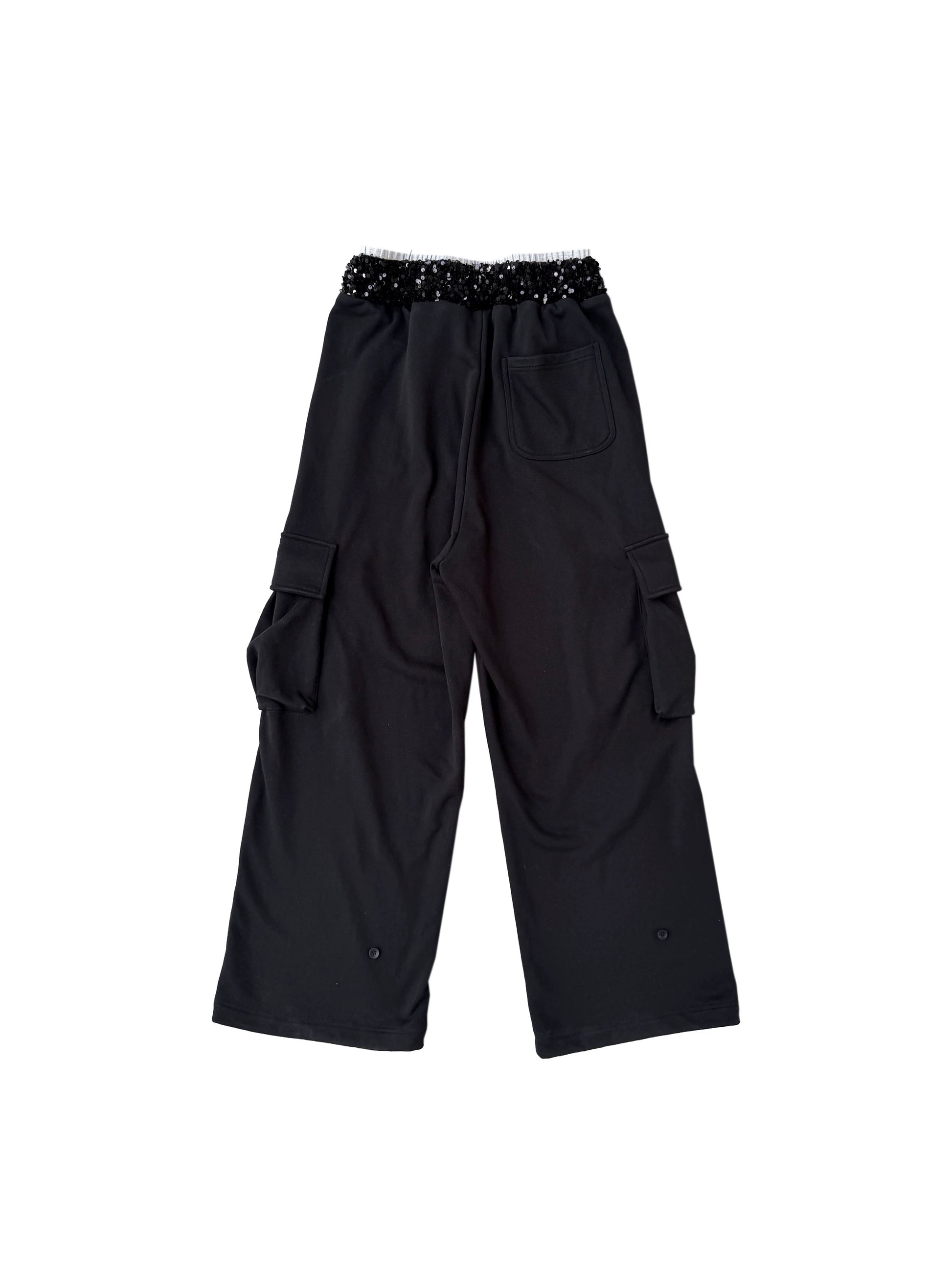 CHAI SS26 Heraldic Print Cargo Sweatpants - Sequin Waistband Multi-Pocket Joggers