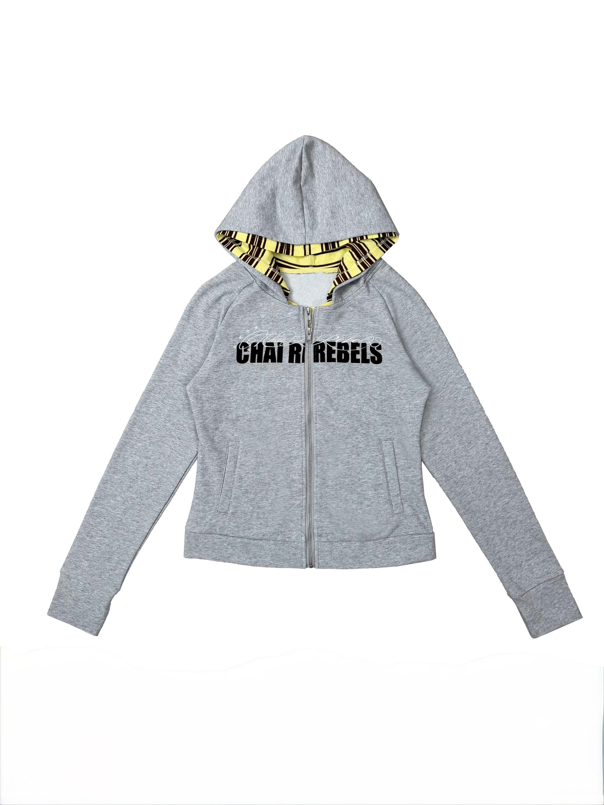 Star Embroidery Contrast Stripe Zip-Up Hoodie